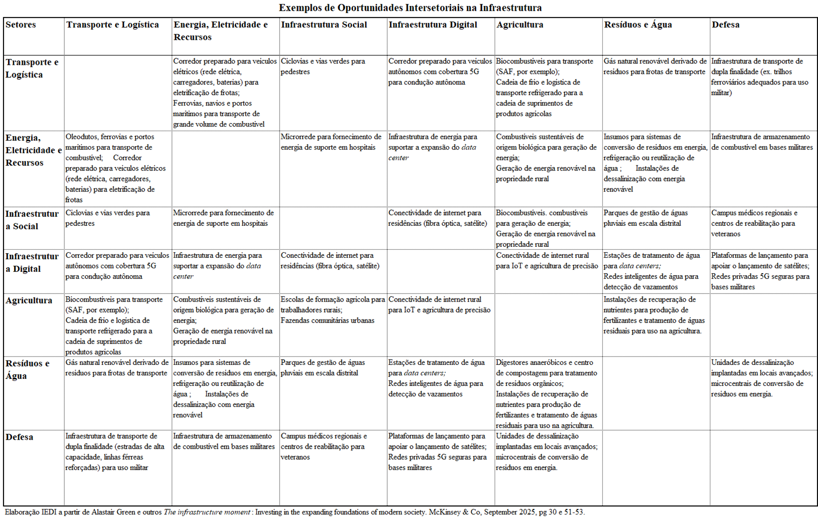Embora o relatório faça apenas menções pontuais ao Brasil, sobretudo no contexto da infraestrutura agrícola, as recomendações da McKinsey são plenamente aplicáveis ao contexto brasileiro e delineiam caminhos possíveis para que o país se alinhe às transformações globais de infraestrutura.