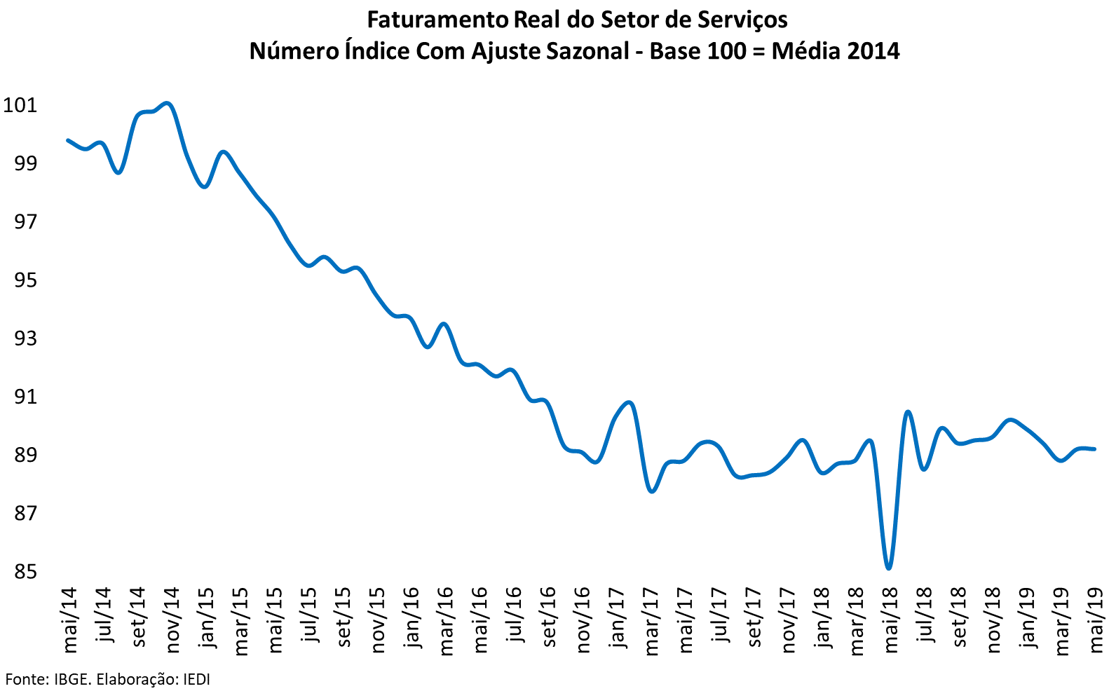 Os primeiros meses de 2019 traziam a esperança de termos uma reação mais satisfatória do agregado dos serviços, mas à medida que o semestre vem passando tem ocorrido uma acomodação do seu ritmo de crescimento. Embora pareça ter deixado para trás a fase de declínio, a realidade atual do setor é de crescimento modesto.