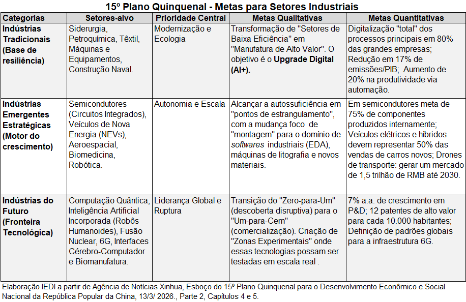 Em abr/26, abre-se mais uma etapa da estratégia de desenvolvimento da China com seu 15º Plano Quinquenal. Pela primeira vez, sua implementação ocorrerá em um contexto de fragmentação internacional, acirrada competição tecnológica com os EUA, reconfiguração das cadeias globais de valor e rápido avanço da inteligência artificial. Dois alertas para o Brasil e o mundo: a China redobra aposta no avanço de sua competitividade industrial e buscará autossuficiência tecnológica e em cadeias de suprimento.
