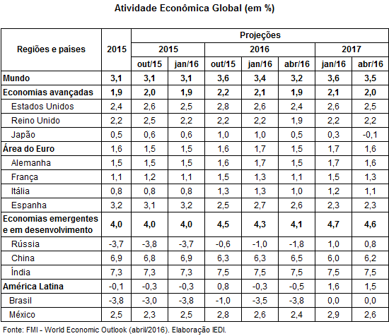 recente e as perspectivas para a economia global em 2016 e 2017,