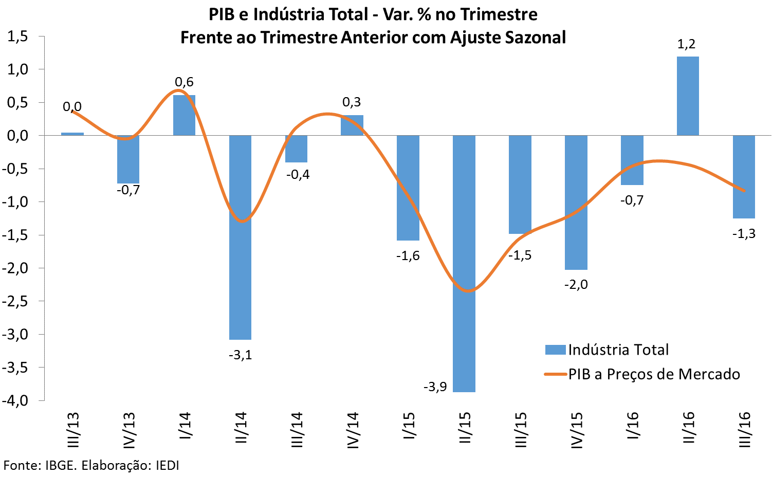 • PIB da Indústria: -2,0%; -0,8%; +1,2% e -1,3%, nas mesmas comparações