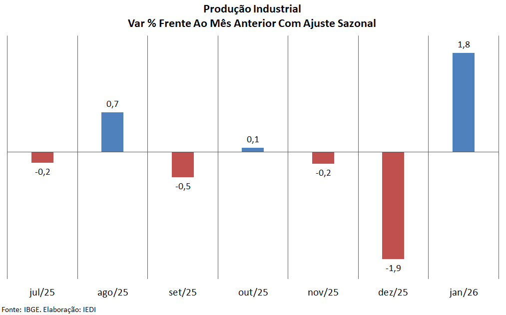 Dos 25 ramos industriais identificados pelo IBGE, 19 aumentaram produção em jan/26 (76%), entre os quais 58% não chegaram a anular a queda registrada no final do ano passado.